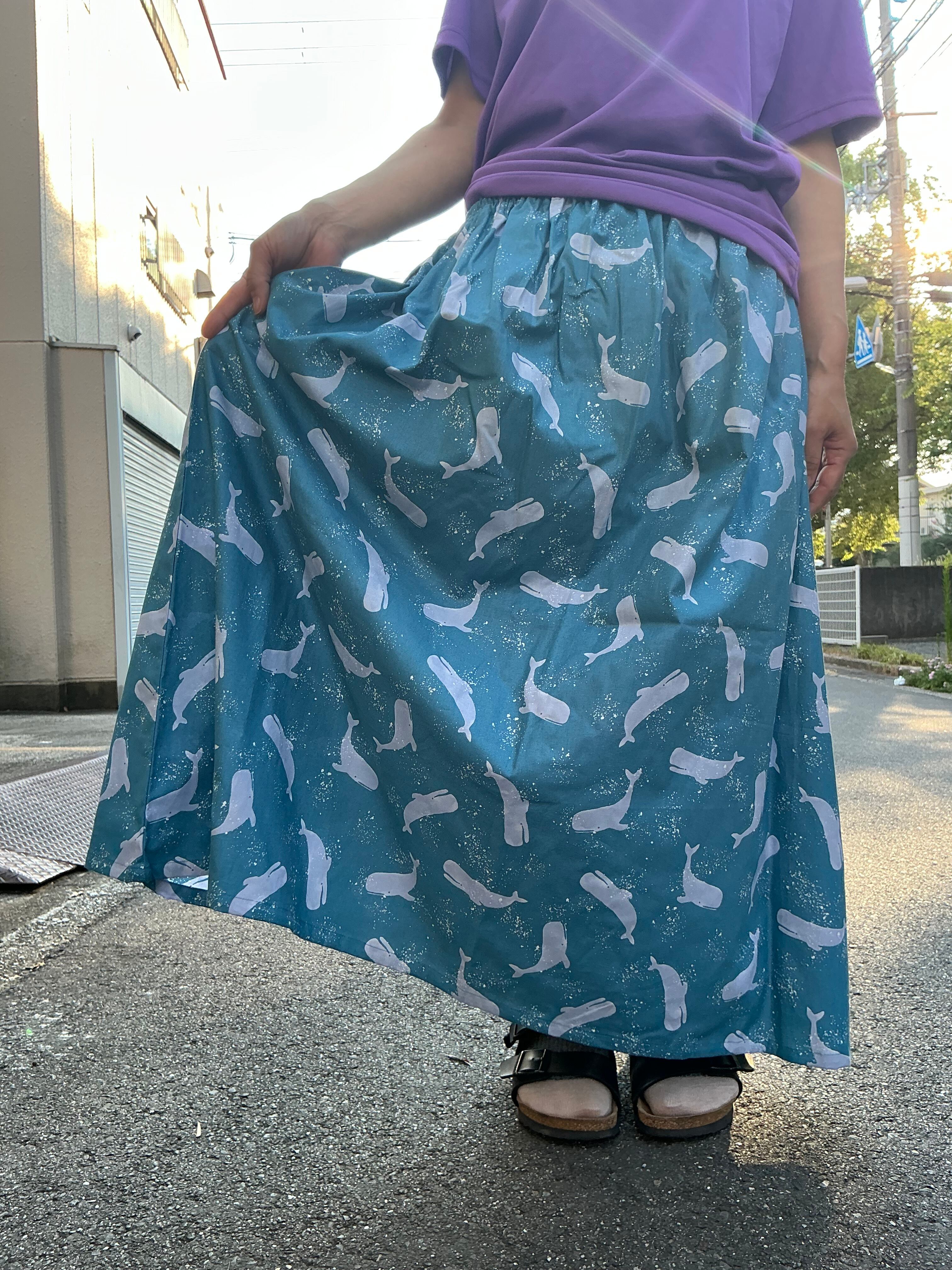 SALE コットンロングスカート 鯨(水色) | cicobird
